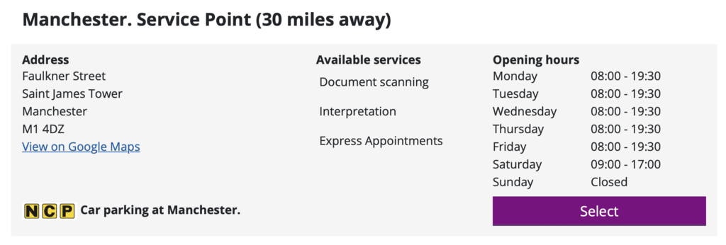 我去的是曼徹斯特的簽證中心,去的時候人不多,整個流程不到30分鐘就結束了。