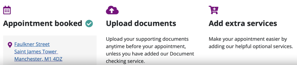 之後會有連結帶你到UKVCAS網站頁面,這裡可以預約壓指紋及上傳文件,部分畫面如圖。