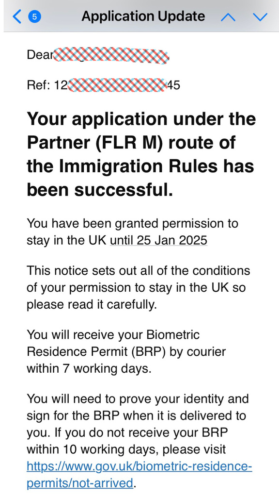 7/21 收到Home Office的Email説簽證申請成功